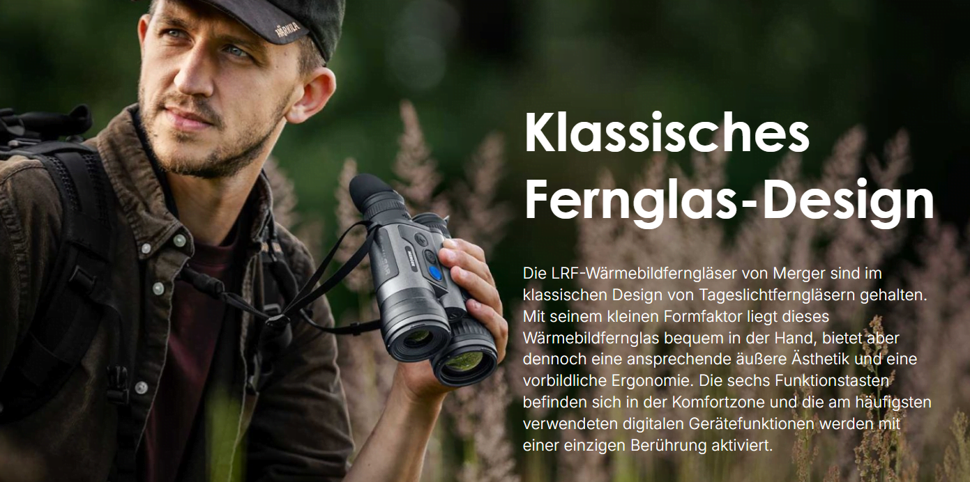 Das klassische Fernglas-Design des Merger LRF wurde für stundenlange, ermüdungsfreie Beobachtung entwickelt.