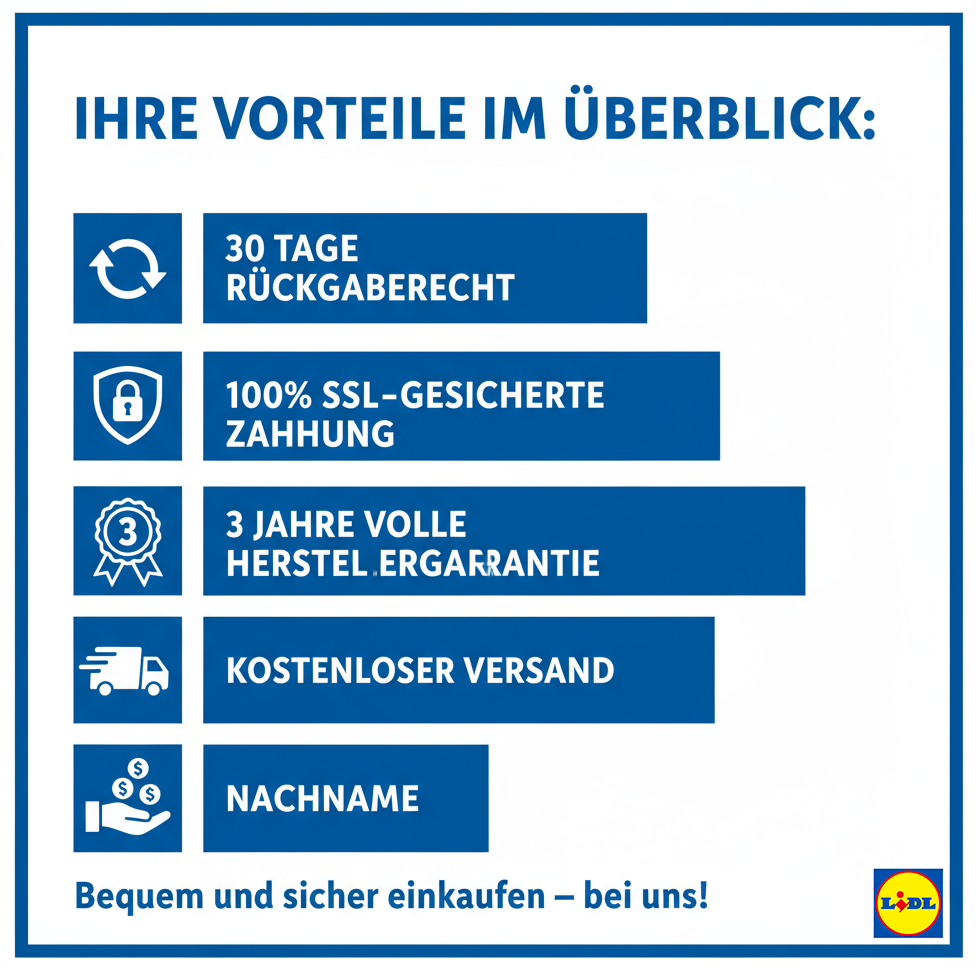 Als Teil unserer LIDL-Kooperation erhalten die nächsten 100 Besteller zusätzlich eine physische €50 LIDL-Einkaufskarte (wird der Lieferung beigelegt)